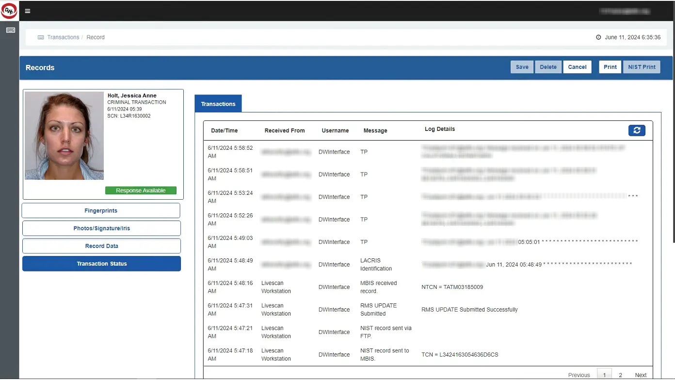 The GTM is a full-featured web-based transaction management tool that supports electronic storage and display of transaction data from multiple biometric systems within a seamless interface. Timestamped transactional statuses and related data from LiveScan ten-print submissions, Mobile-ID (RapidID) submissions, and Applicant background checks can be easily reviewed within the GTM web application, with in-depth query and reporting capabilities.